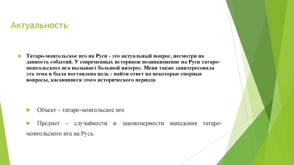 АктуальностьТатаро-монгольское иго на Руси - это актуальный вопрос, несмотря на
