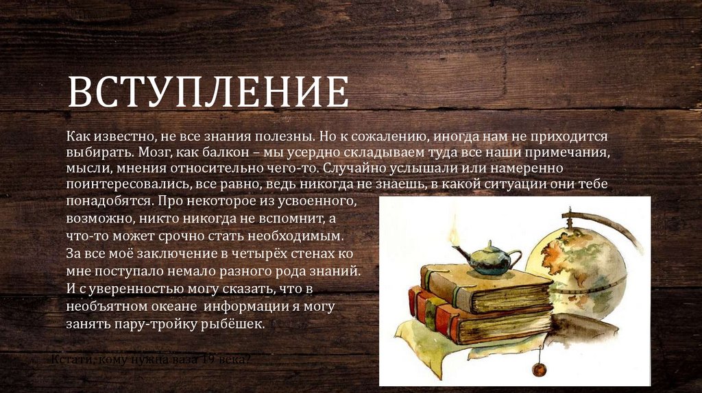 ВСТУПЛЕНИЕКак известно, не все знания полезны. Но к сожалению, иногда нам не приходится