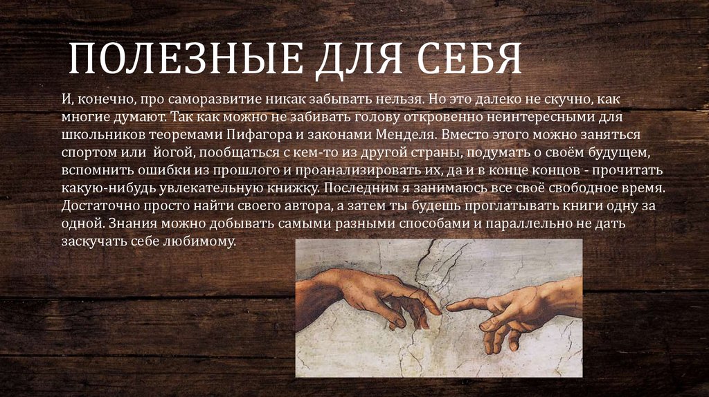 ПОЛЕЗНЫЕ ДЛЯ СЕБЯИ, конечно, про саморазвитие никак забывать нельзя. Но это далеко не скучно, как