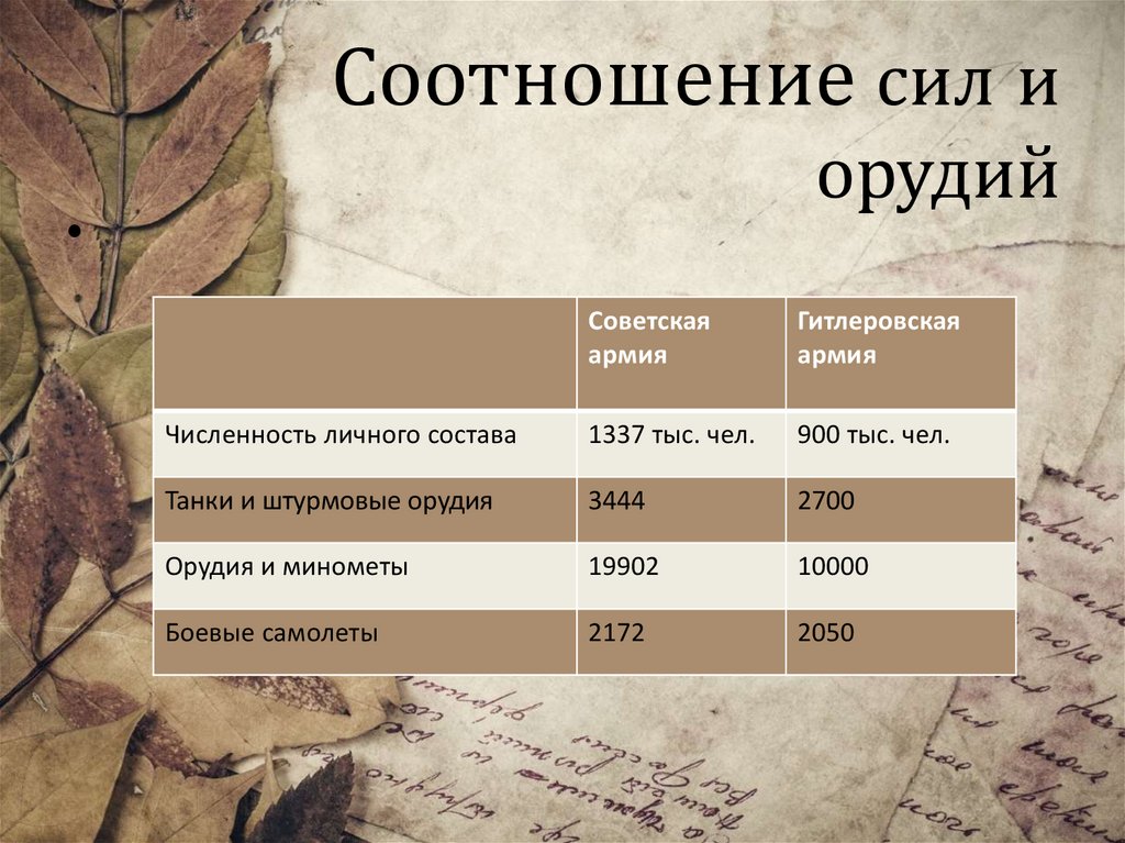 Соотношение сил иорудий