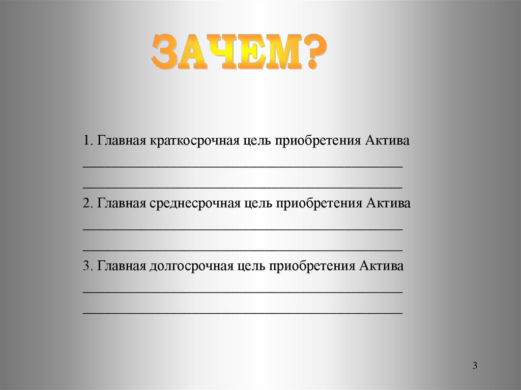3. Главная долгосрочная цель приобретения Актива