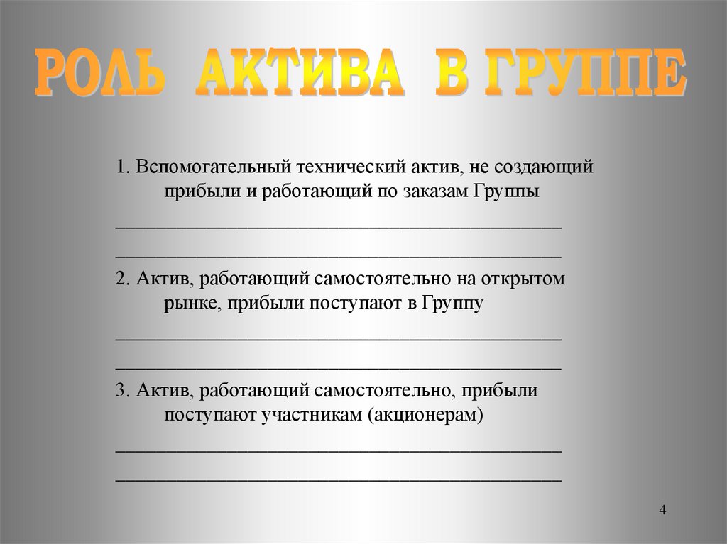 1. Вспомогательный технический актив, не создающийприбыли и работающий по заказам Группы