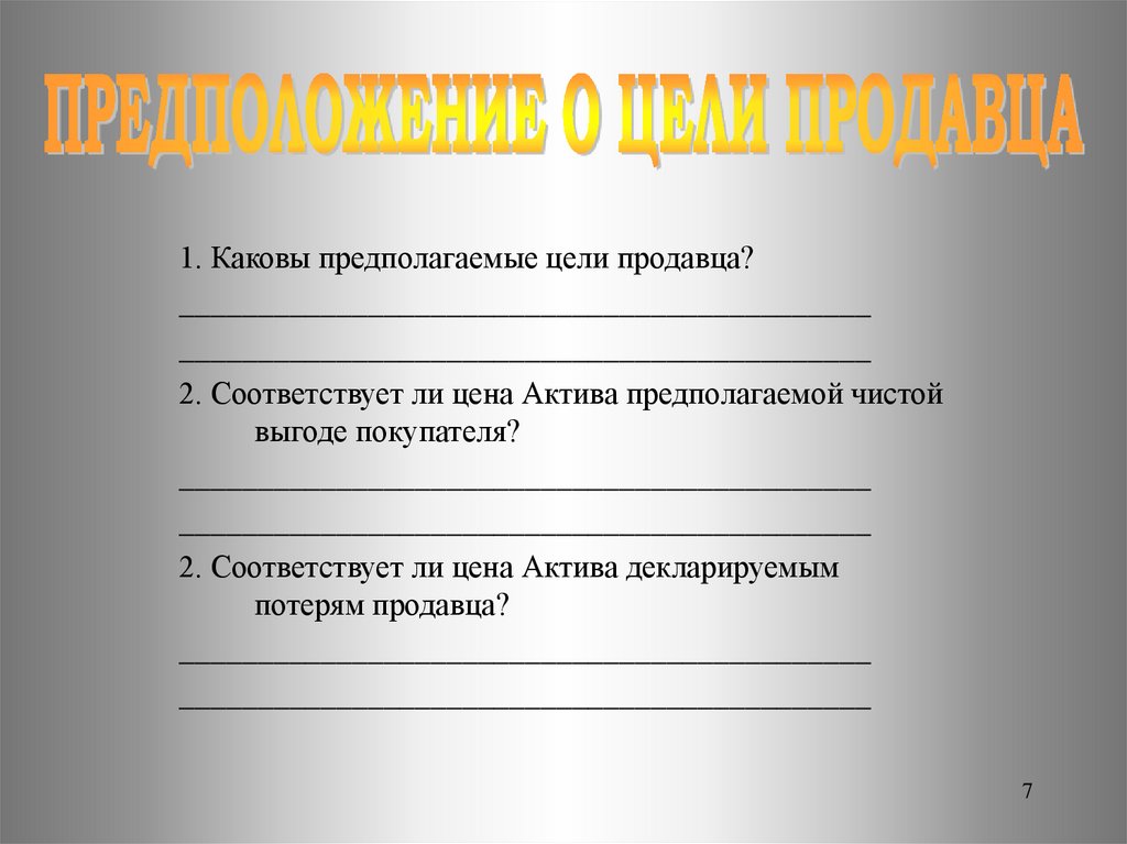 1. Каковы предполагаемые цели продавца?____________________________________________