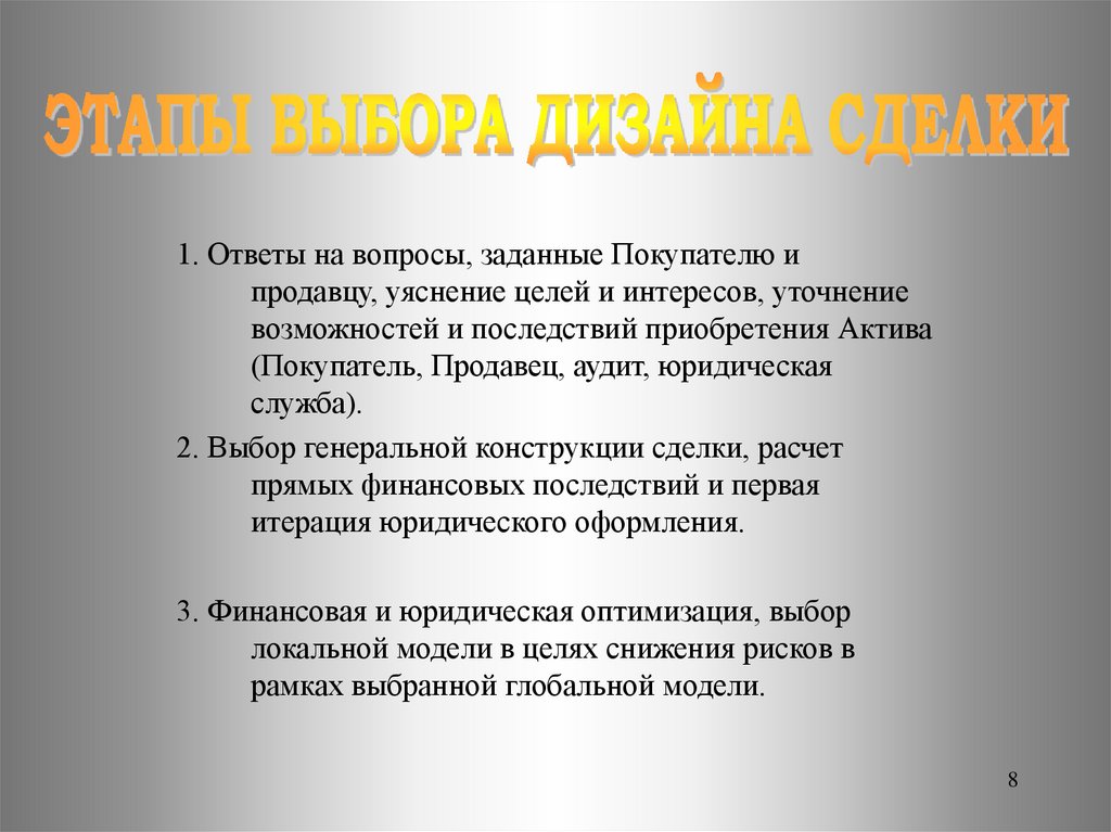 3. Финансовая и юридическая оптимизация, выбор