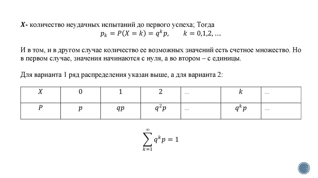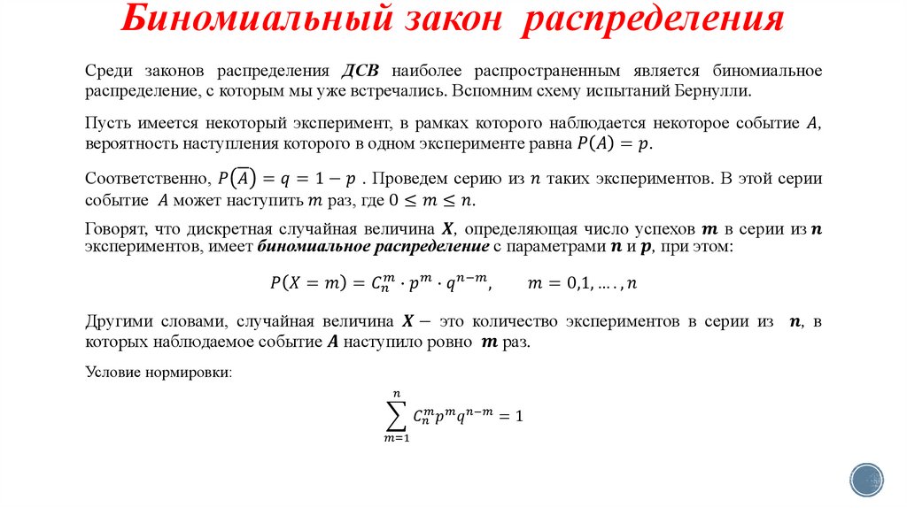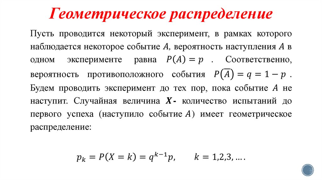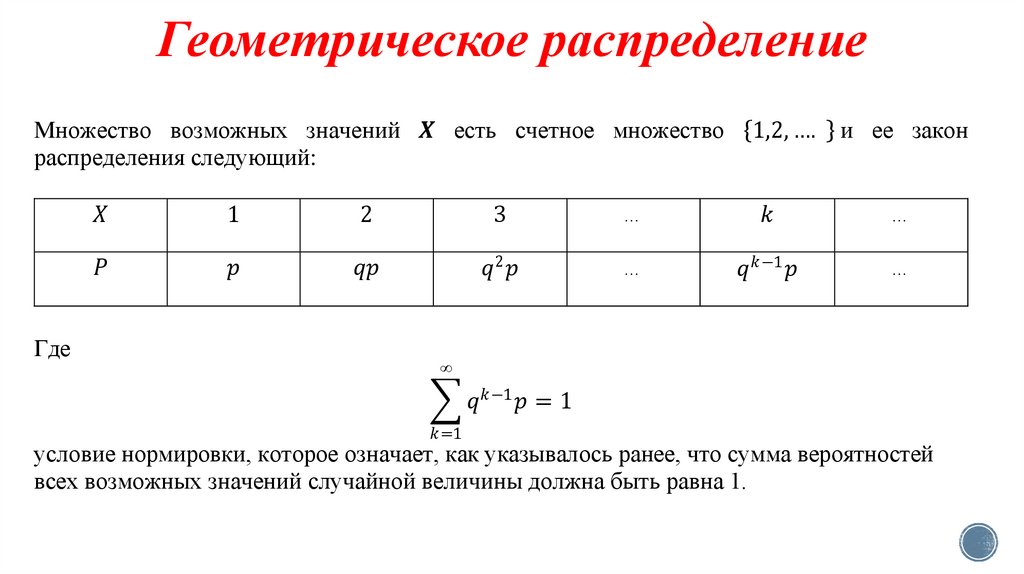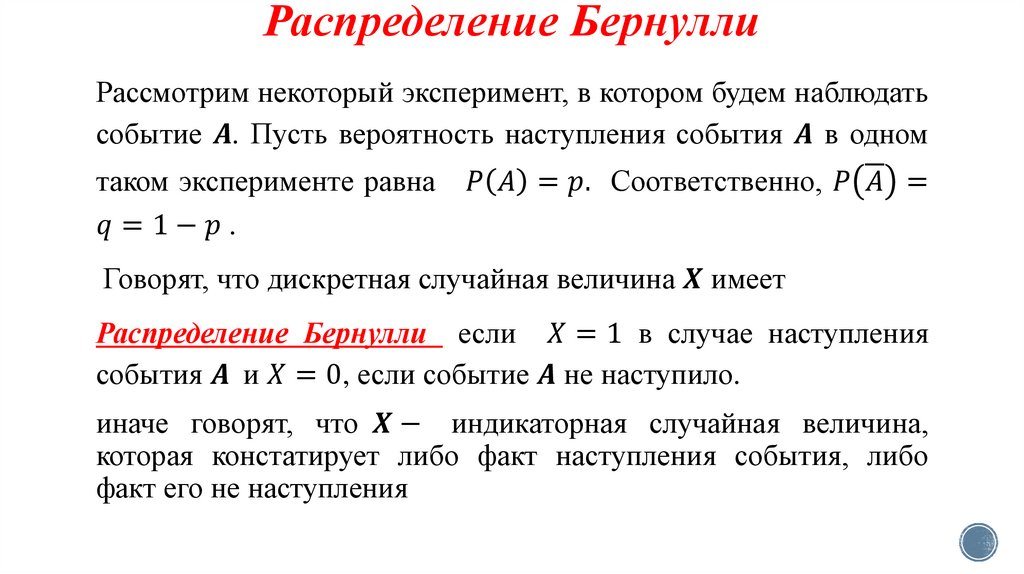 Так называется распределение вероятностей случайной величины, заданной следующим