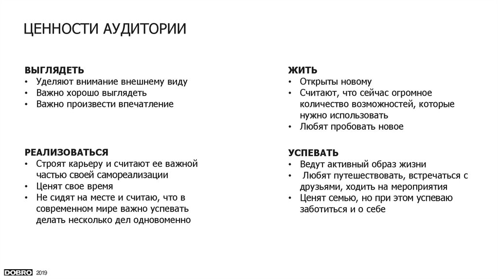 ЦЕННОСТИ АУДИТОРИИВЫГЛЯДЕТЬ