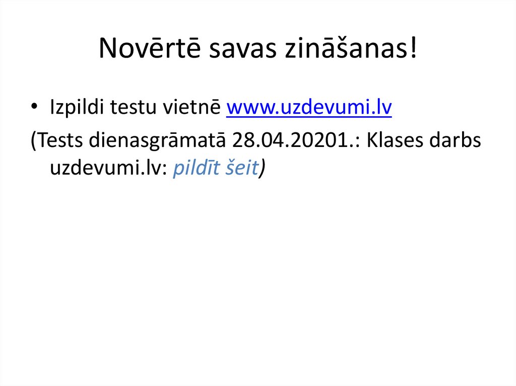Novērtē savas zināšanas!• Izpildi testu vietnē www.uzdevumi.lv