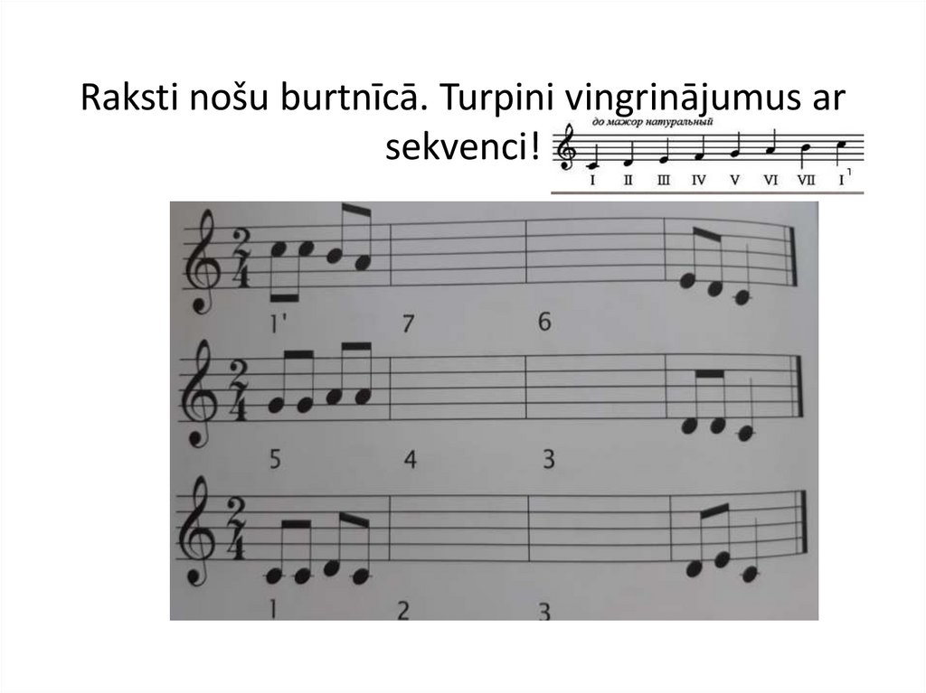 Raksti nošu burtnīcā. Turpini vingrinājumus arsekvenci!