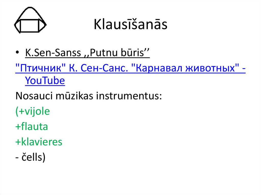 Klausīšanās• K.Sen-Sanss ,,Putnu būris’’