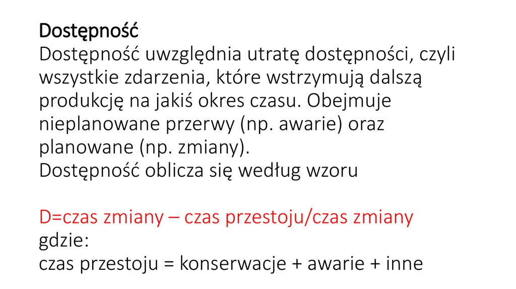 D=czas zmiany – czas przestoju/czas zmiany
