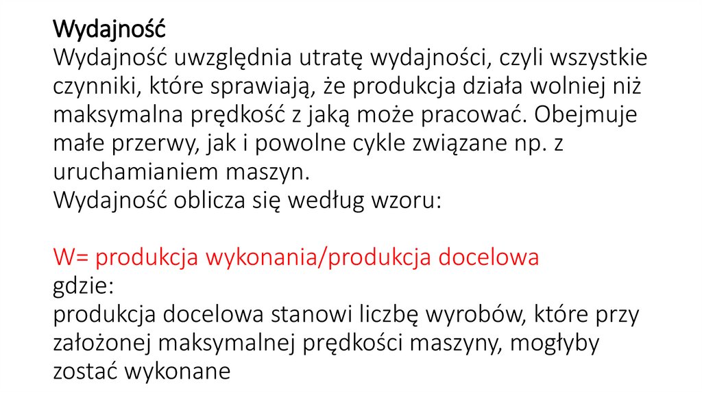 WydajnośćWydajność uwzględnia utratę wydajności, czyli wszystkie
