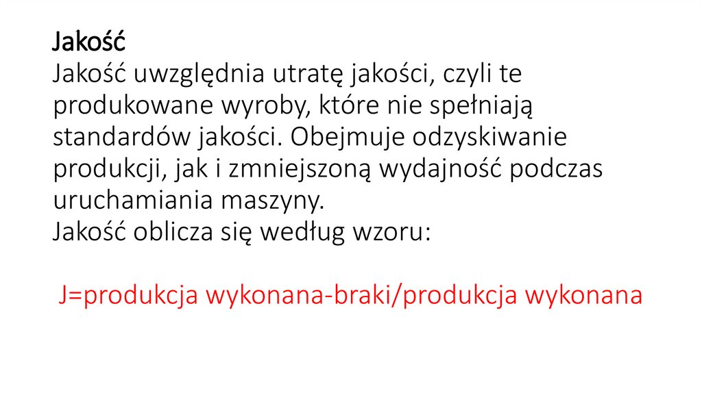 JakośćJakość uwzględnia utratę jakości, czyli te