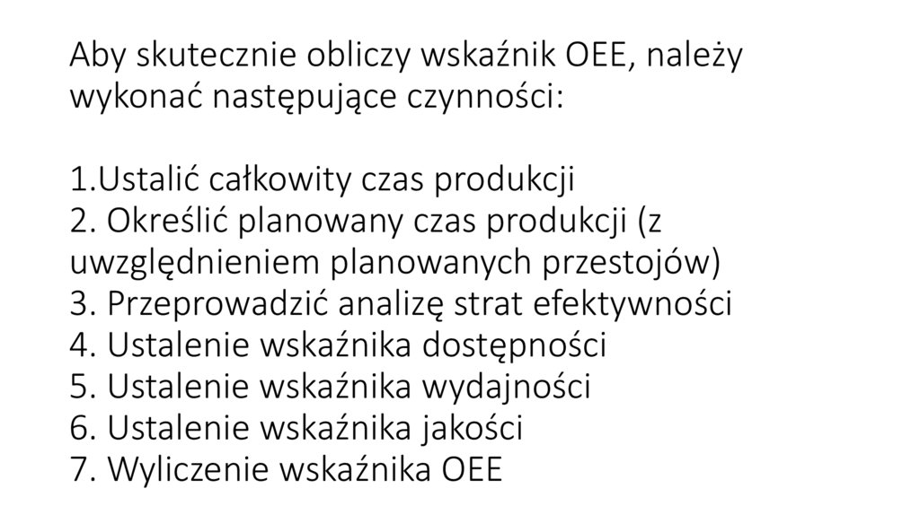 Aby skutecznie obliczy wskaźnik OEE, należywykonać następujące czynności: