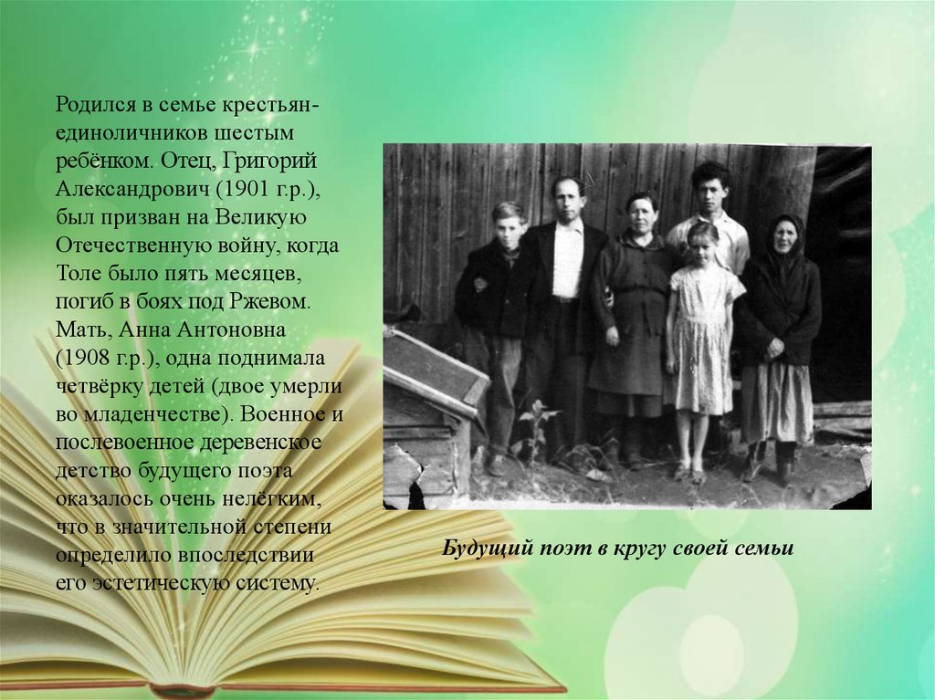 Родился в семье крестьянединоличников шестымребёнком. Отец, Григорий