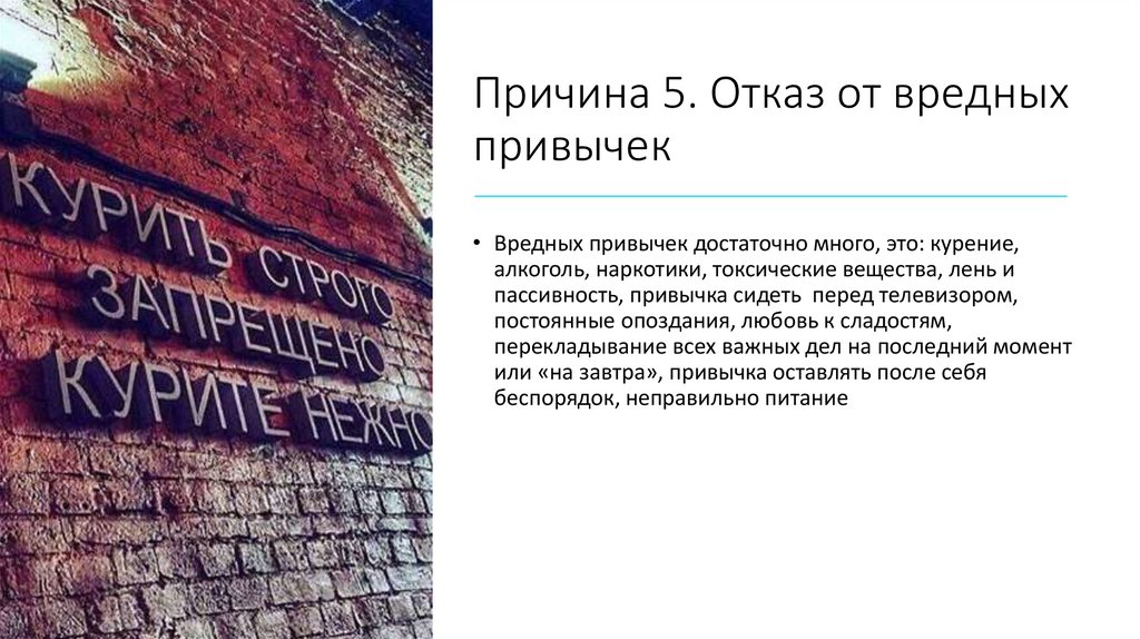 Причина 5. Отказ от вредныхпривычек
