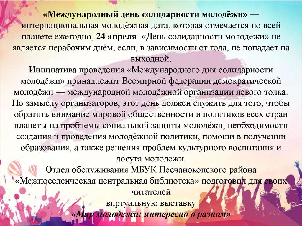 планете ежегодно, 24 апреля. «День солидарности молодёжи» не