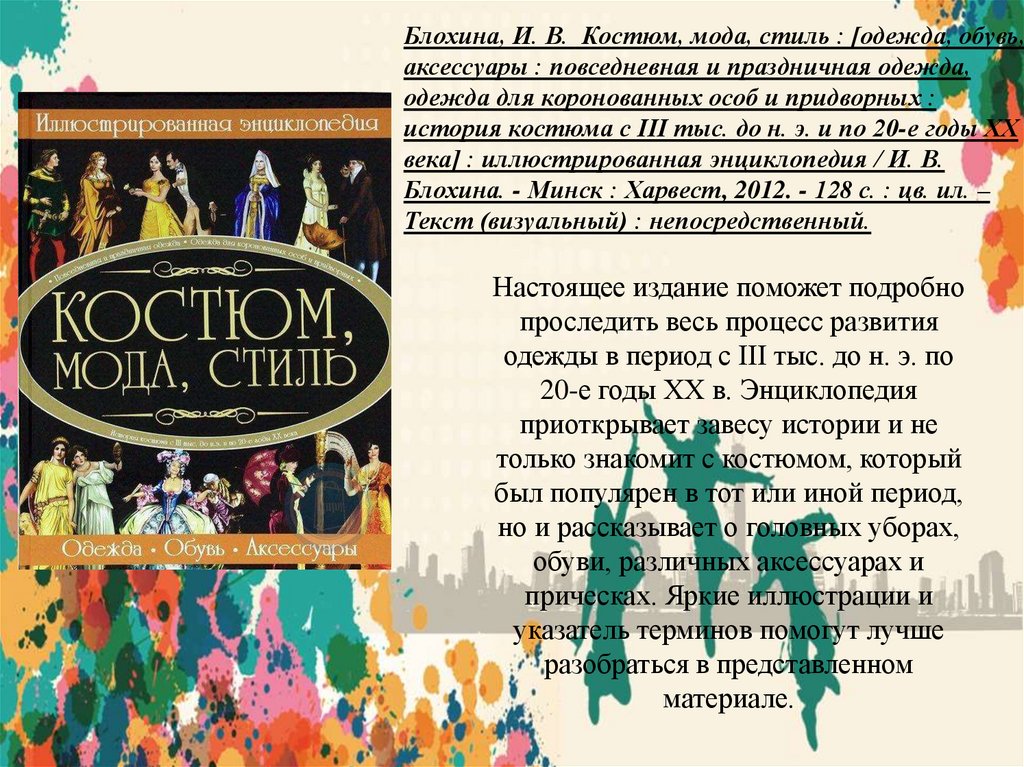 Блохина, И. В. Костюм, мода, стиль : [одежда, обувь,аксессуары : повседневная и праздничная одежда,