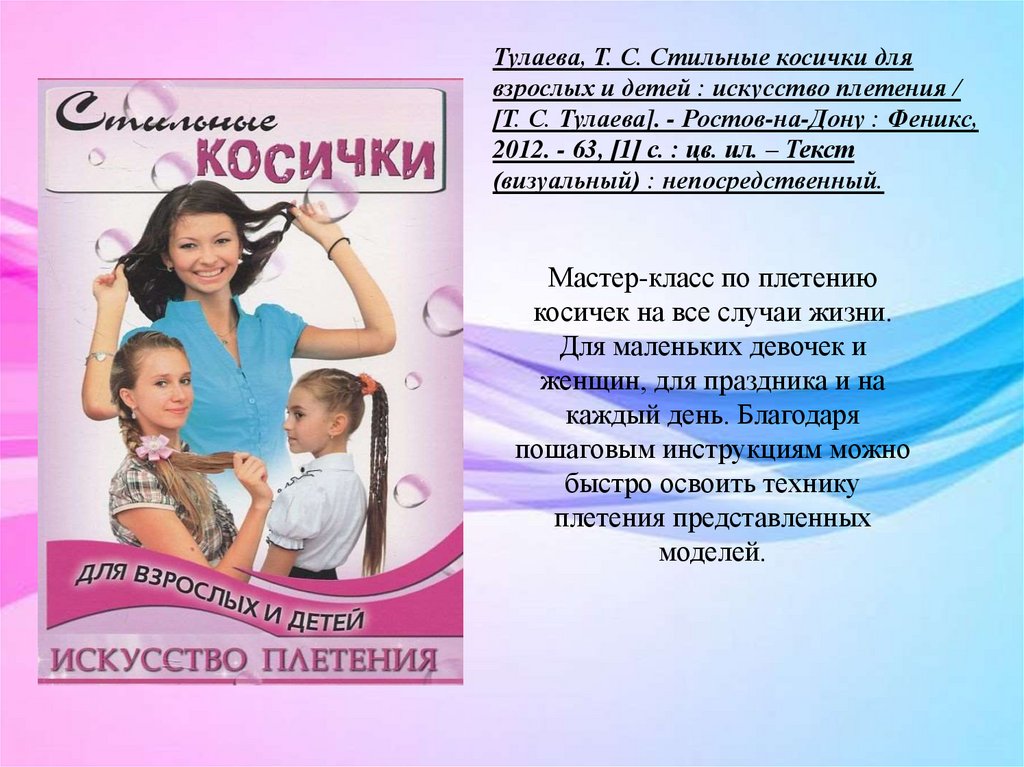 Тулаева, Т. С. Стильные косички длявзрослых и детей : искусство плетения /