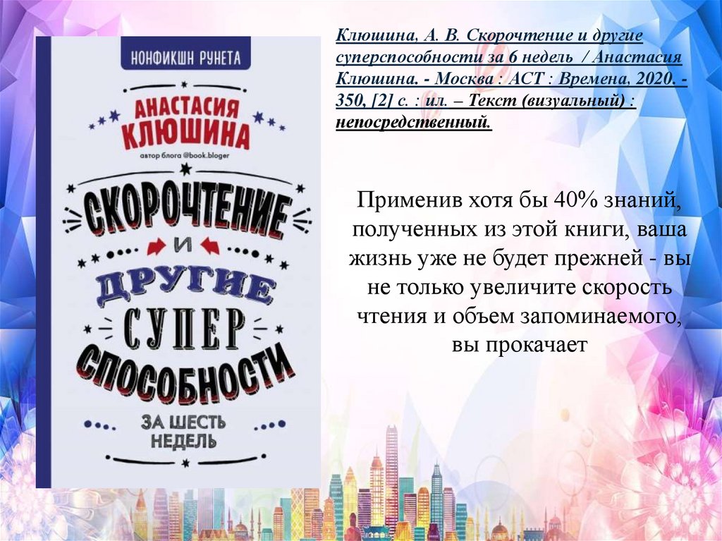 Клюшина, А. В. Скорочтение и другиесуперспособности за 6 недель / Анастасия