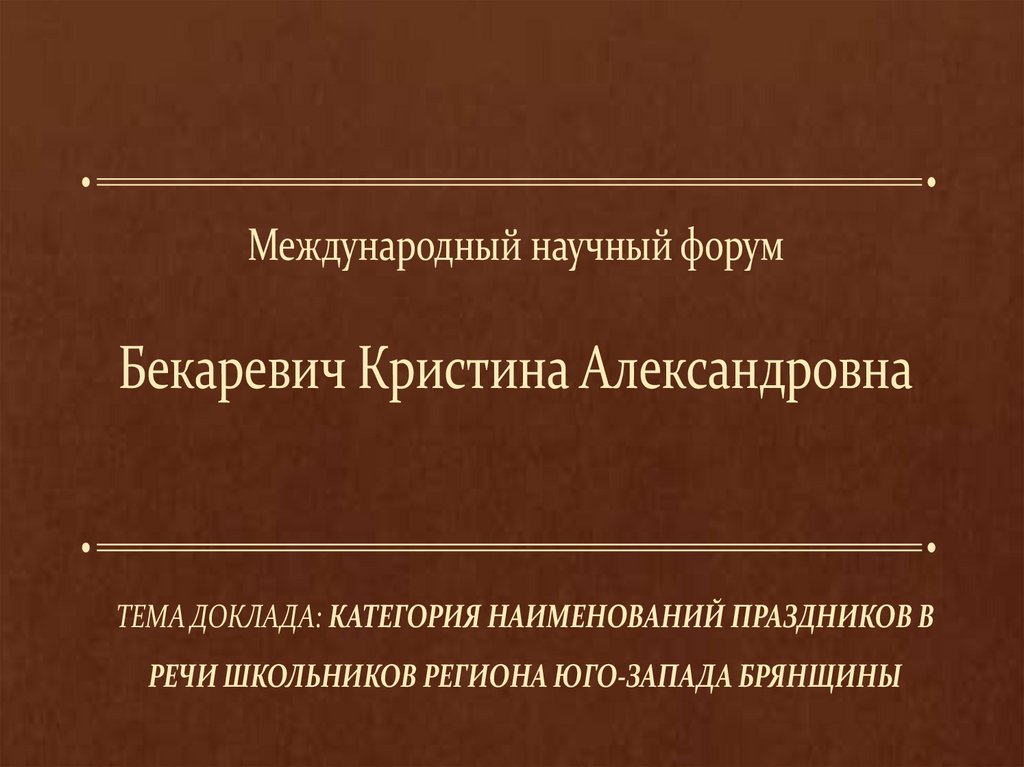 ТЕМА ДОКЛАДА: КАТЕГОРИЯ НАИМЕНОВАНИЙ ПРАЗДНИКОВ В