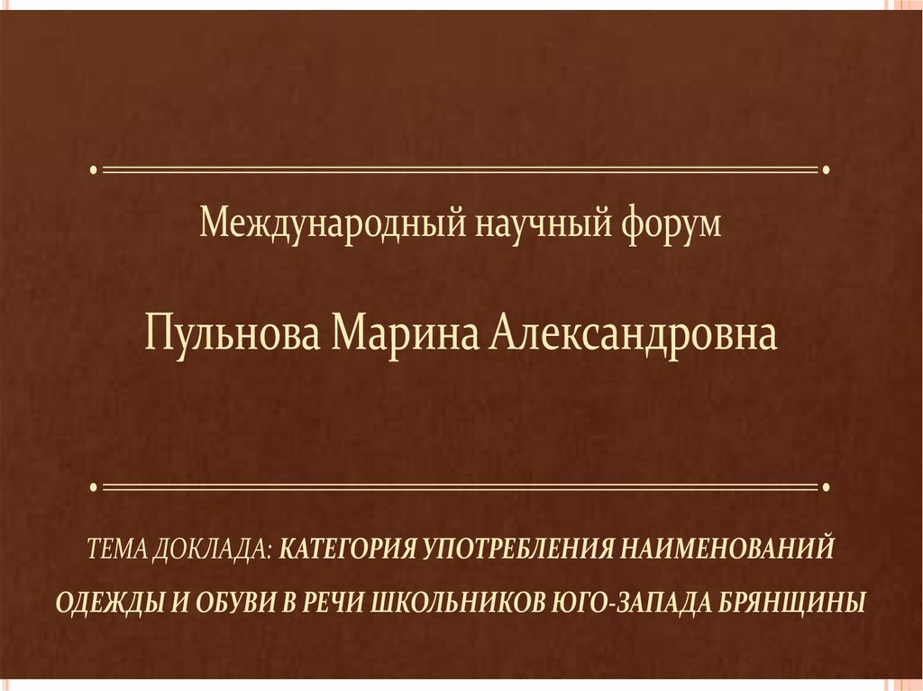 ОДЕЖДЫ И ОБУВИ В РЕЧИ ШКОЛЬНИКОВ ЮГО-ЗАПАДА БРЯНЩИНЫ