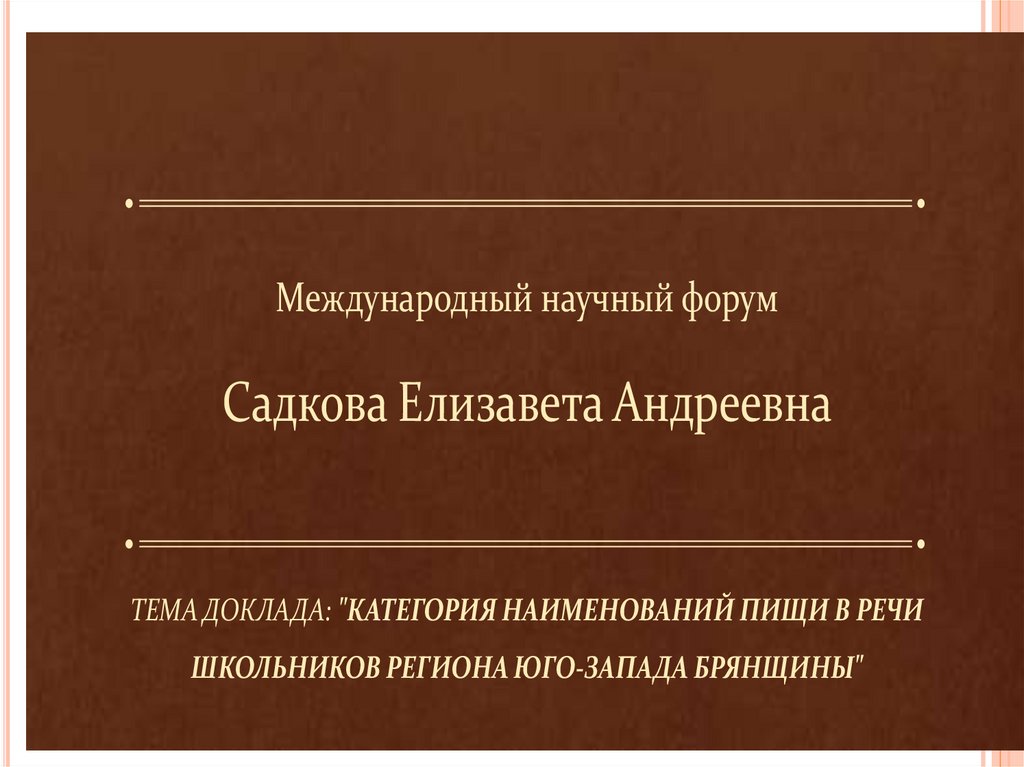 ТЕМА ДОКЛАДА: "КАТЕГОРИЯ НАИМЕНОВАНИЙ ПИЩИ В РЕЧИ