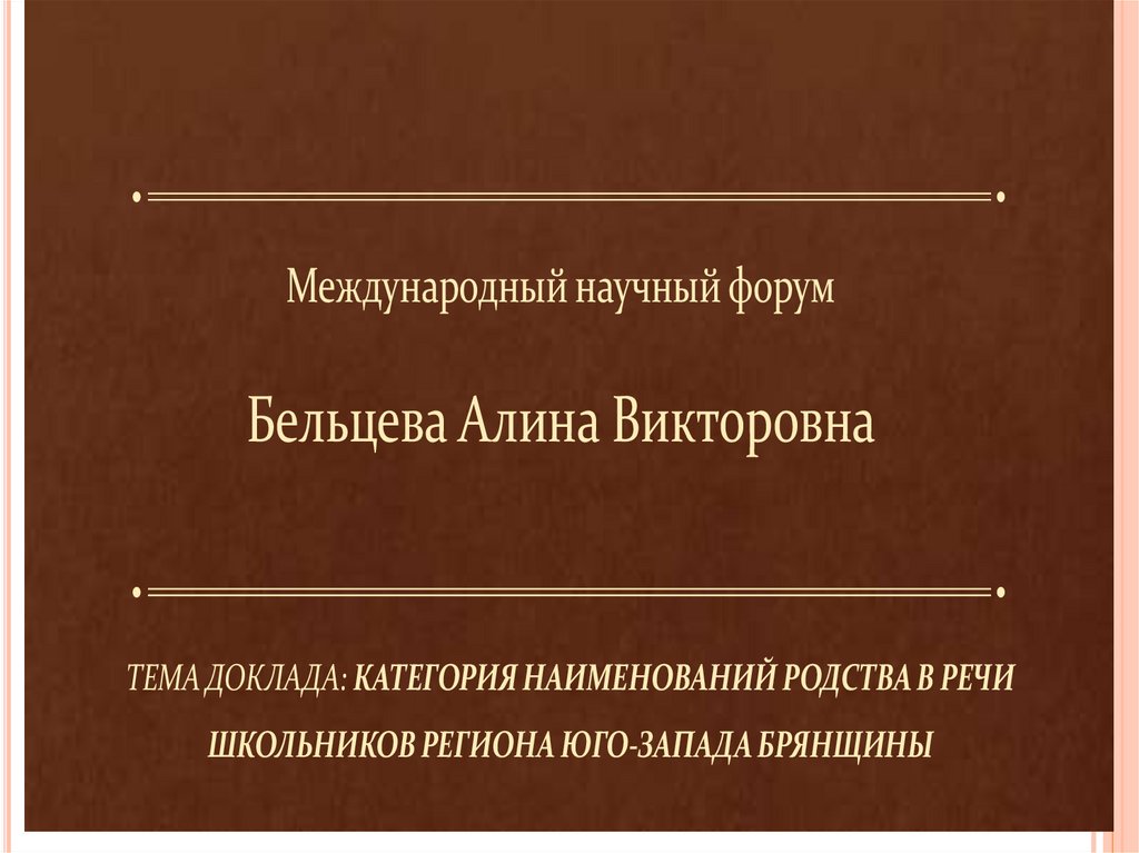 ТЕМА ДОКЛАДА: КАТЕГОРИЯ НАИМЕНОВАНИЙ РОДСТВА В РЕЧИ