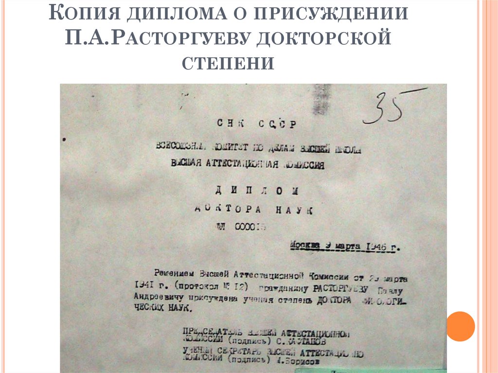 КОПИЯ ДИПЛОМА О ПРИСУЖДЕНИИП.А.РАСТОРГУЕВУ ДОКТОРСКОЙ