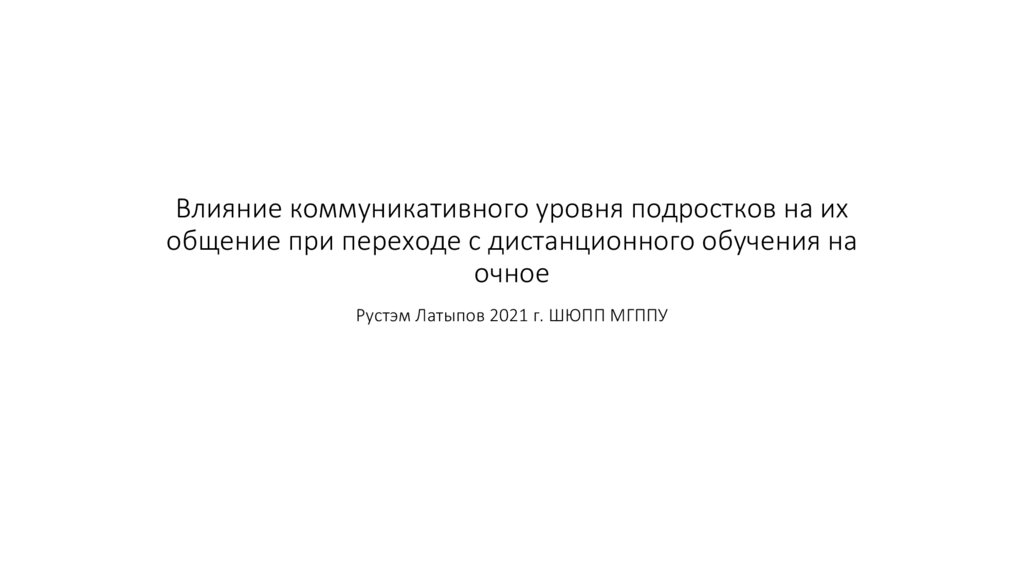 Влияние коммуникативного уровня подростков на их общение при переходе с дистанционного обучения на очное