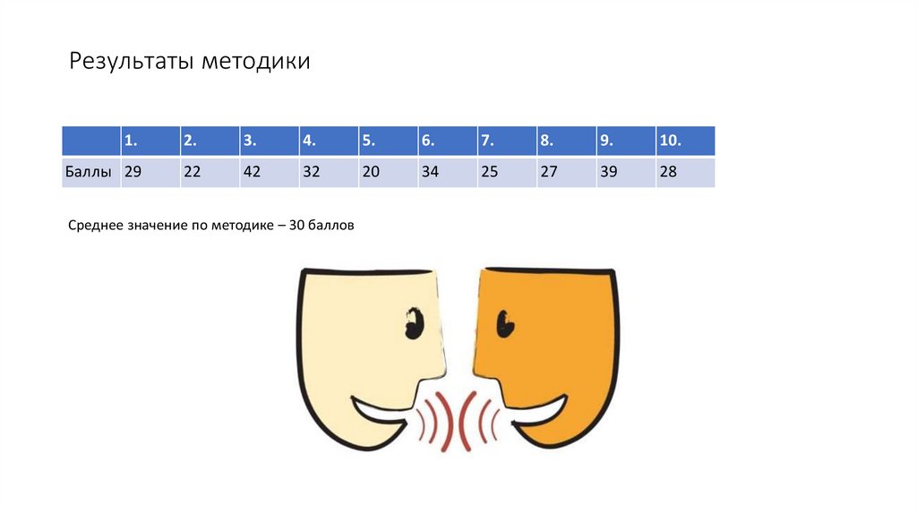 Среднее значение по методике – 30 баллов