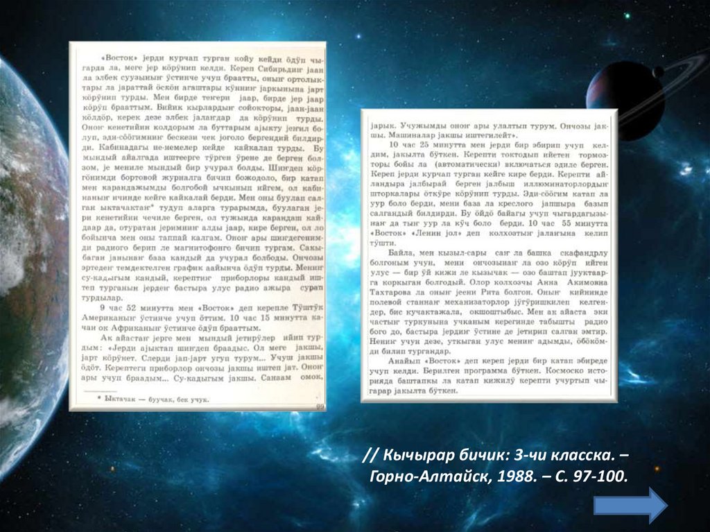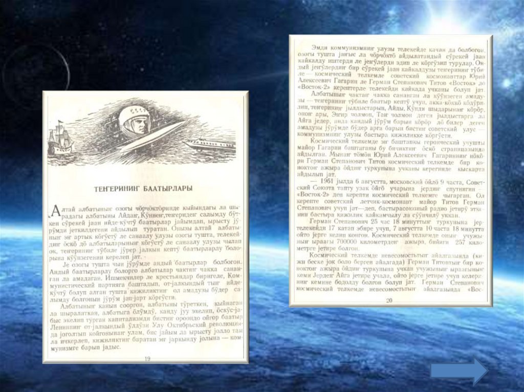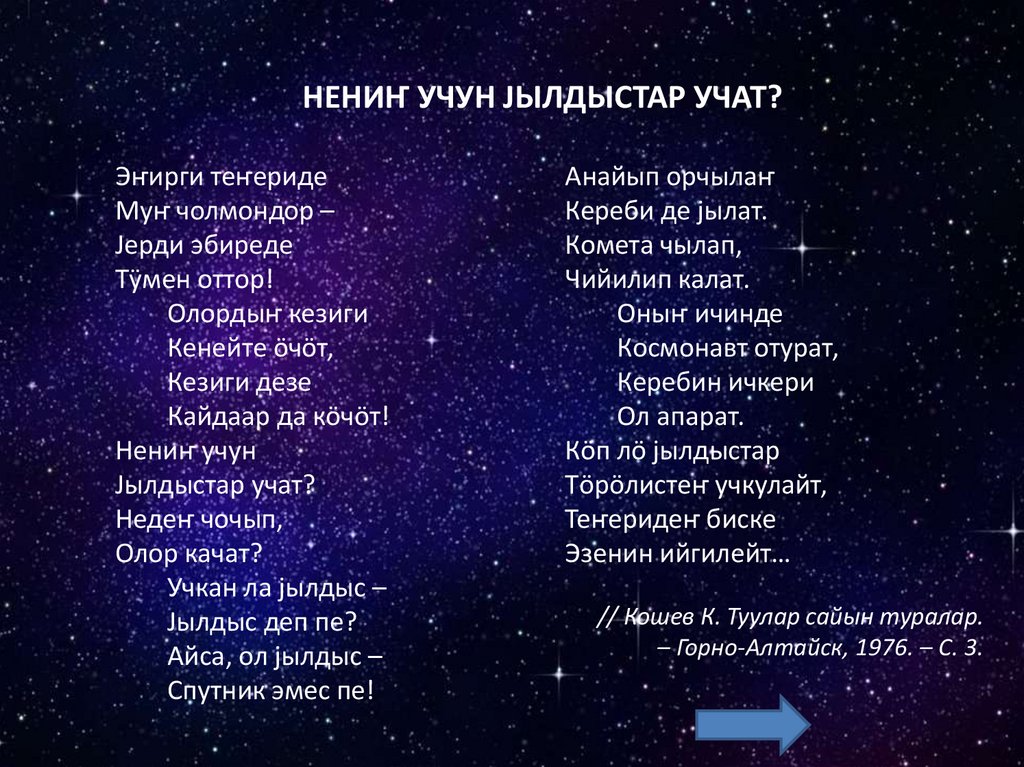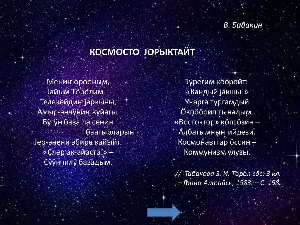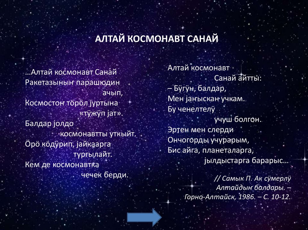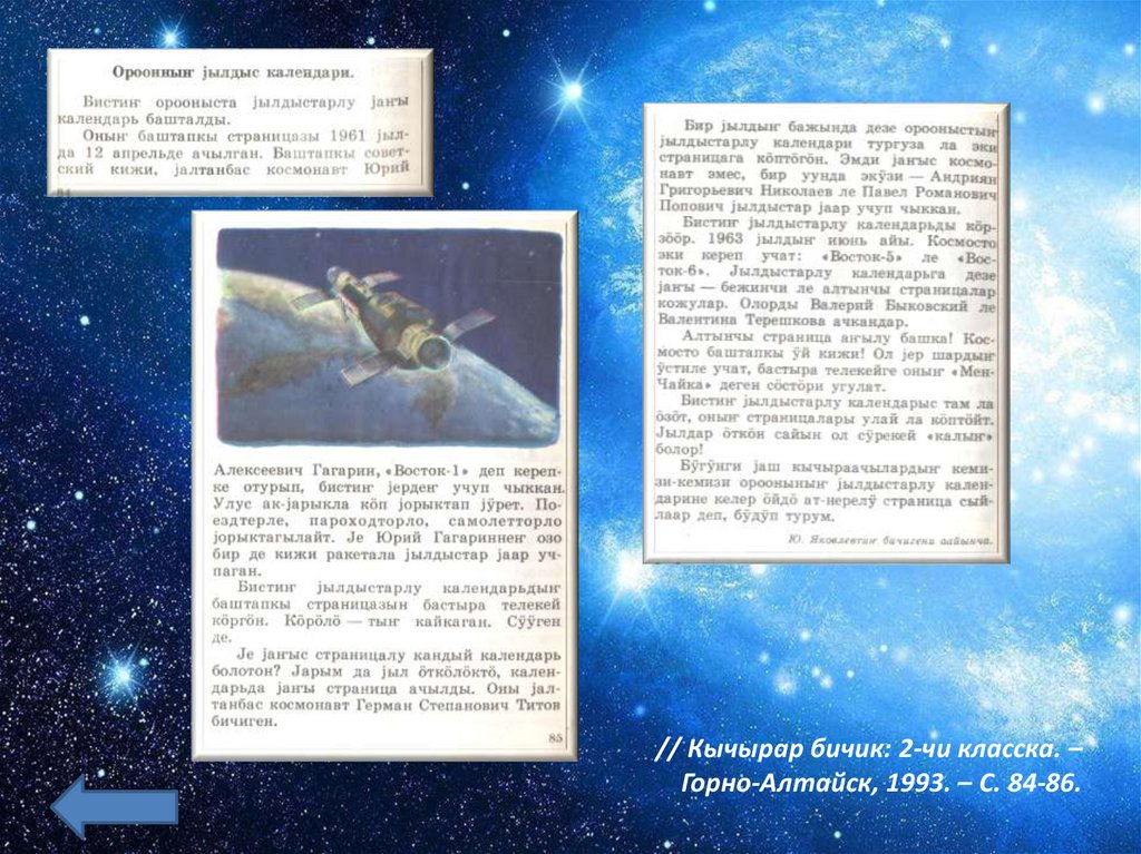 Космосты бактырганыныҥ шылтуузындаалбатыныҥ тилине табышкактар база кожулган.