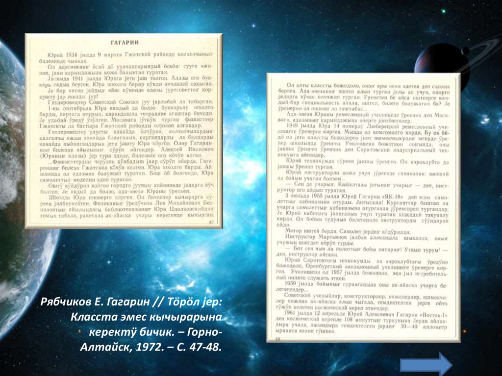 Рябчиков Е. Гагарин // Тӧрӧл jер:Класста эмес кычырарына
