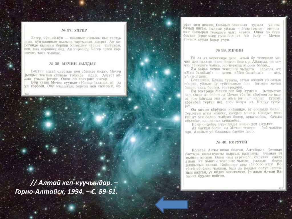 // Алтай кеп-куучындар. –Горно-Алтайск, 1994. – С. 59-61.