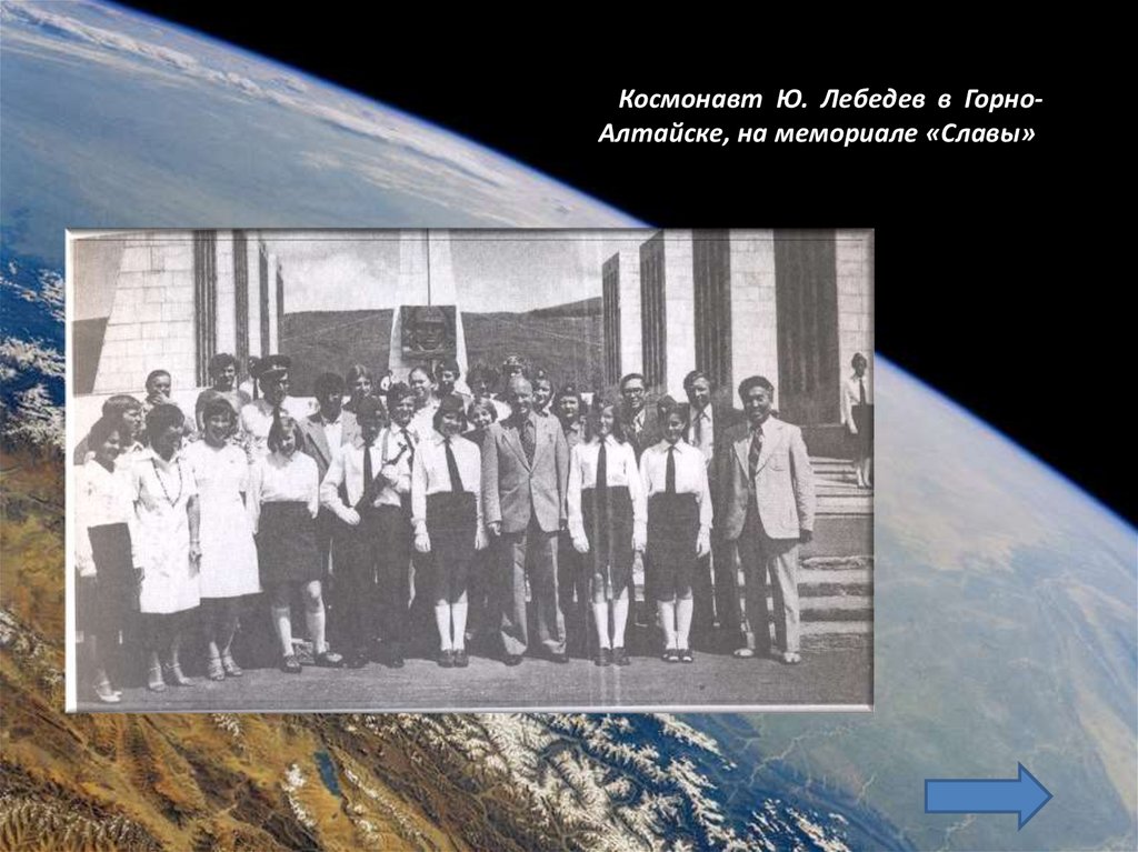 Космонавт Ю. Лебедев в ГорноАлтайске, на мемориале «Славы»41.