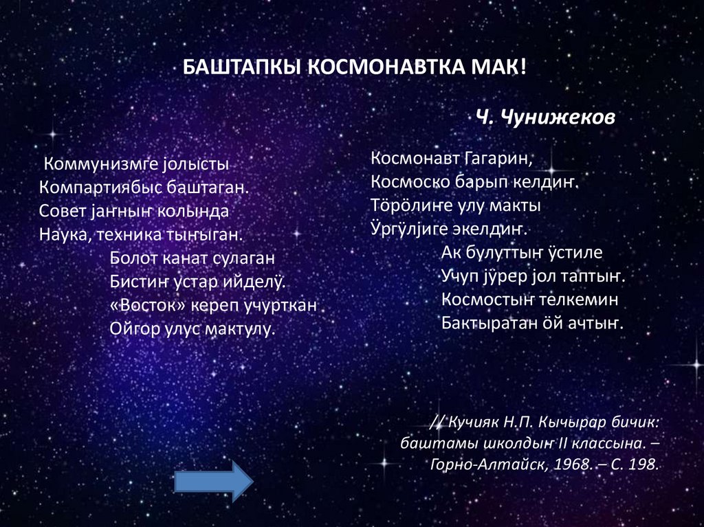 БАШТАПКЫ КОСМОНАВТКА МАК!Ч. Чунижеков