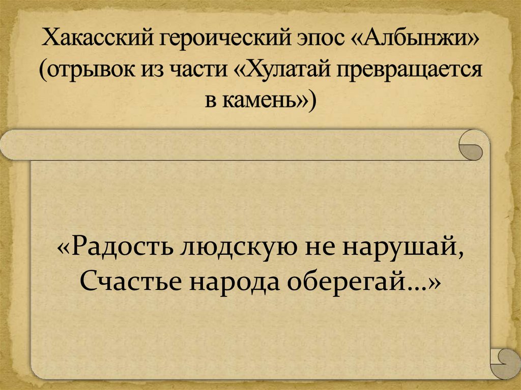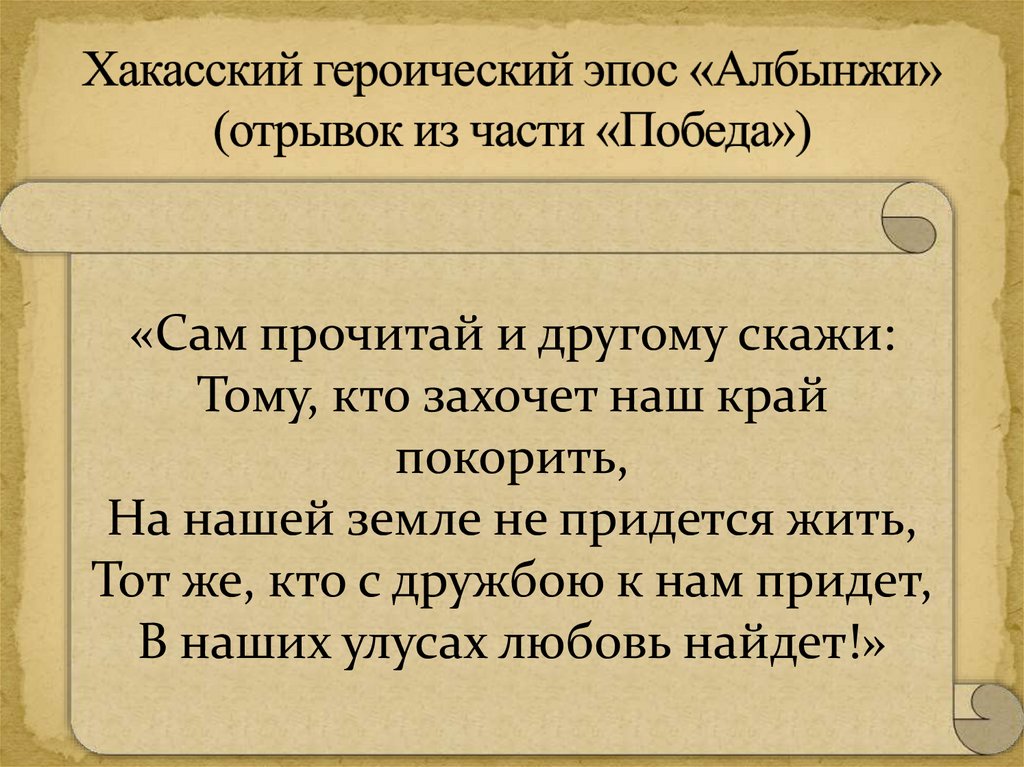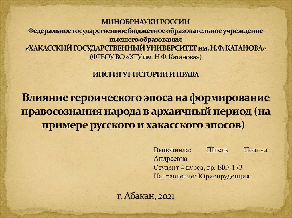 Хакассий эпос и его влияние на формирование правовой культуры народа