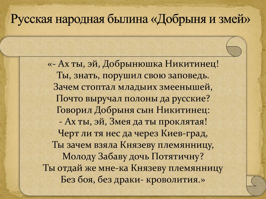 «- Ах ты, эй, Добрынюшка Никитинец!Ты, знать, порушил свою заповедь.