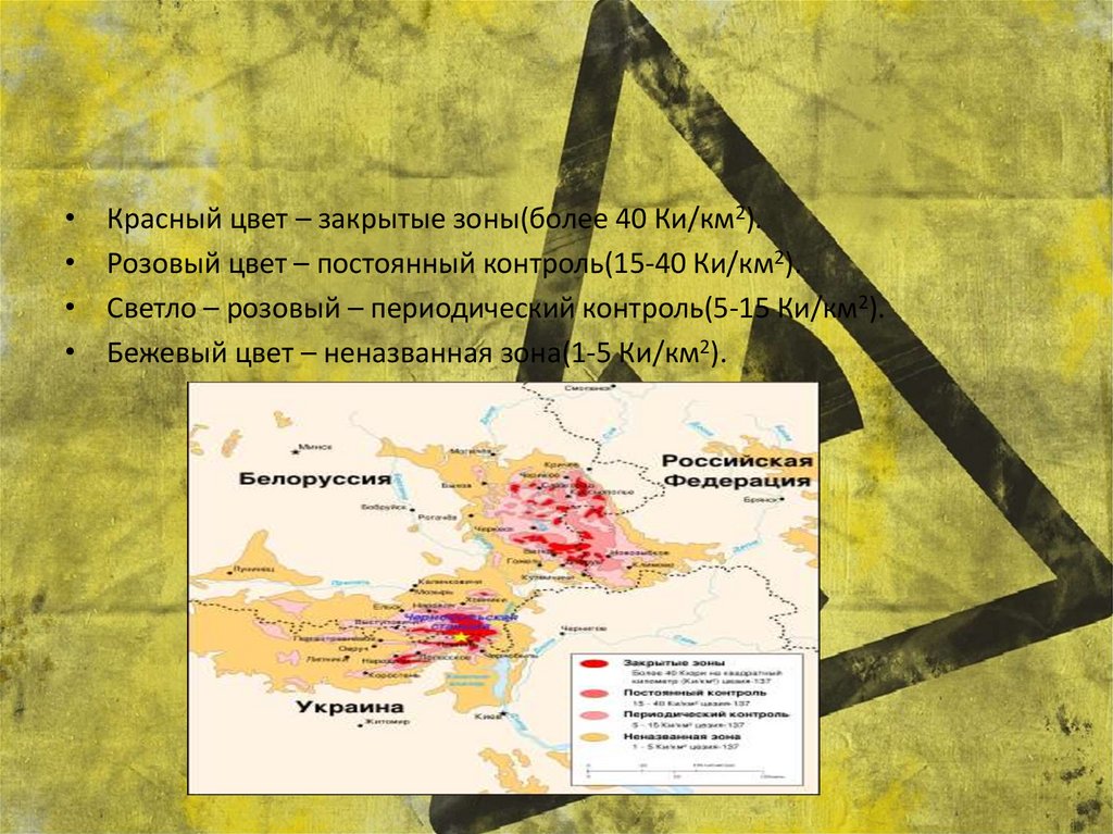 Бежевый цвет – неназванная зона(1-5 Ки/км2).