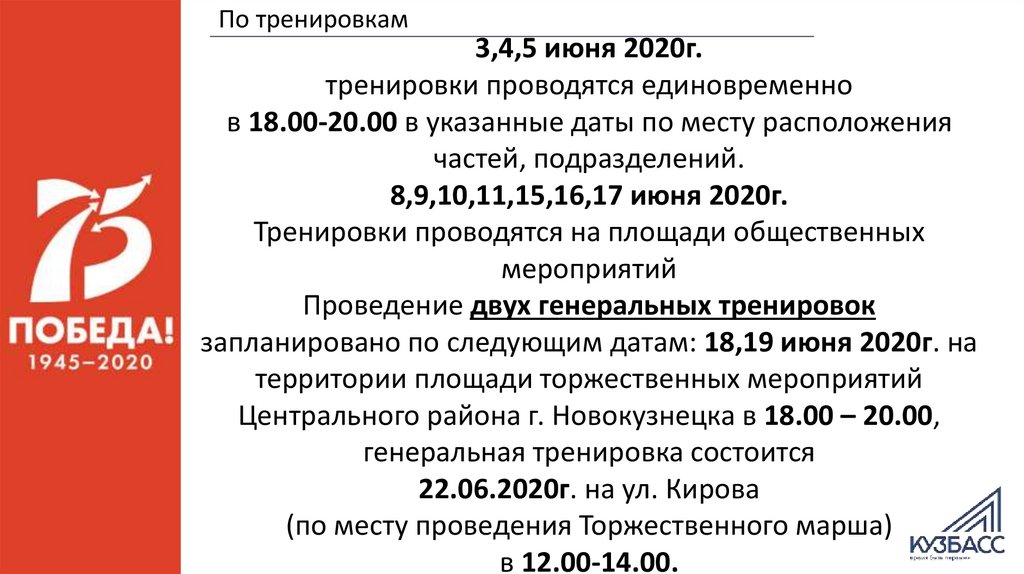 запланировано по следующим датам: 18,19 июня 2020г. на