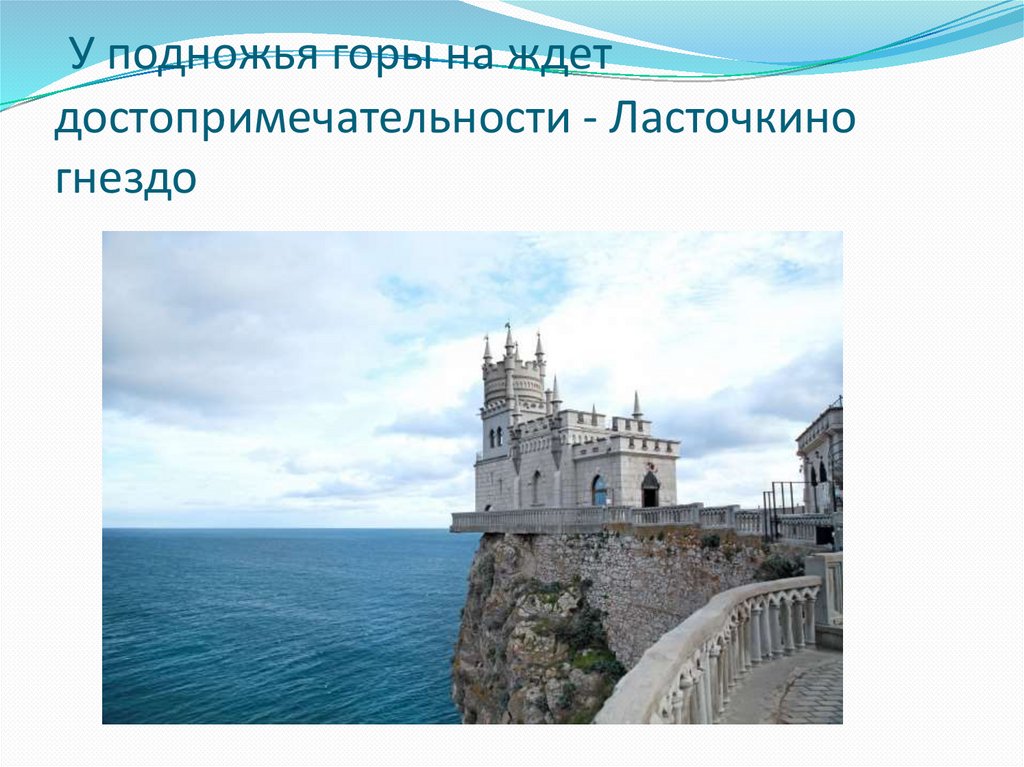 У подножья горы на ждетдостопримечательности - Ласточкино