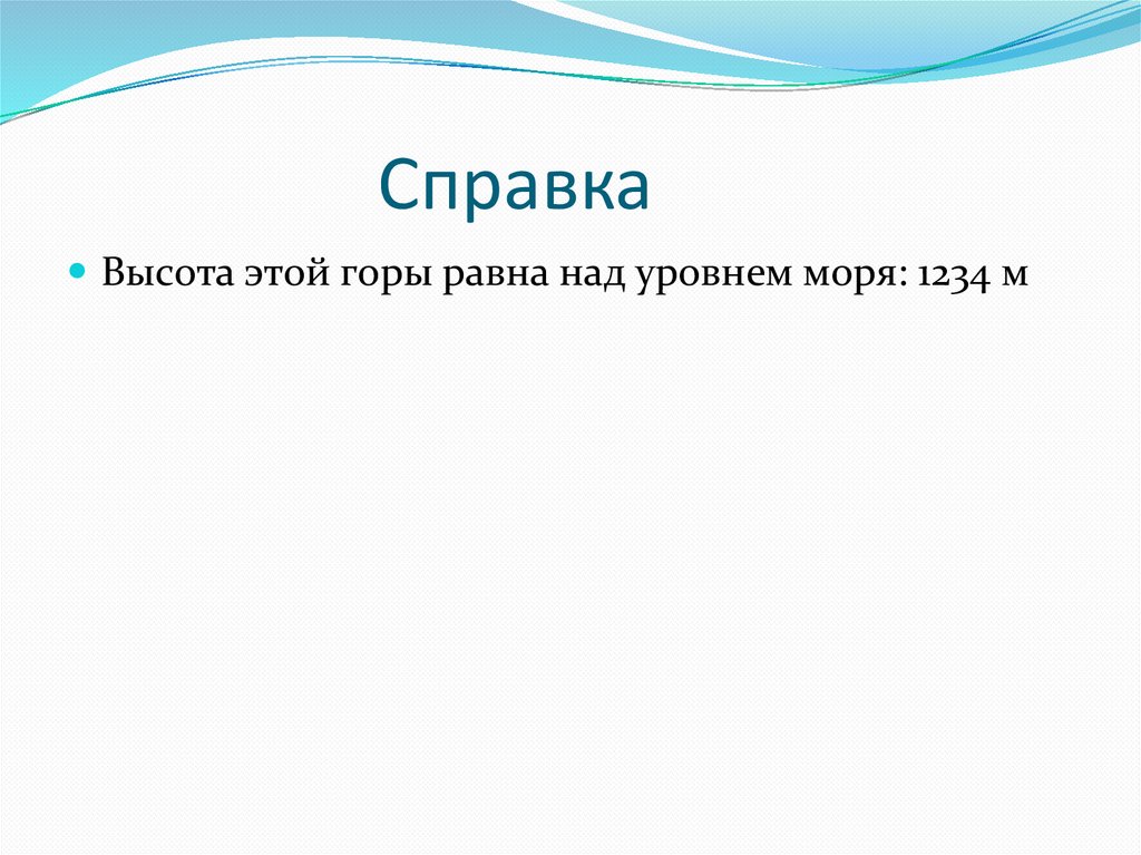 СправкаВысота этой горы равна над уровнем моря: 1234 м