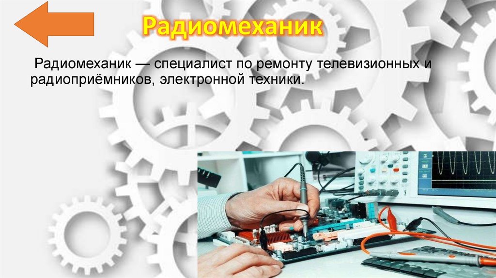 Радиомеханик — специалист по ремонту телевизионных ирадиоприёмников, электронной техники.