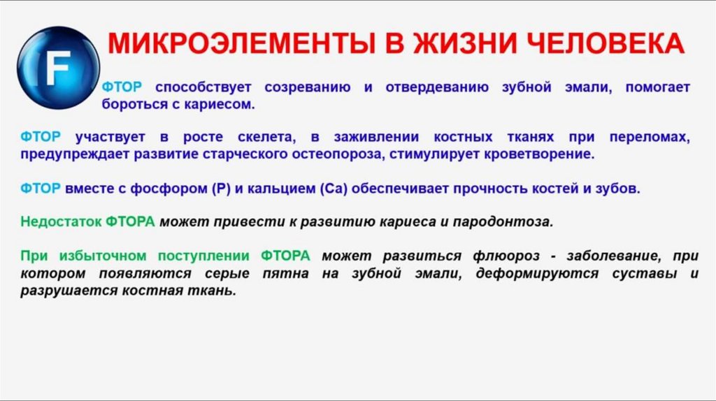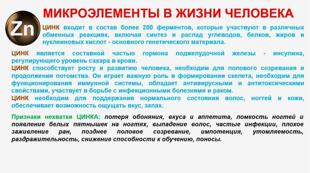 0,01% — микроэлементы. Это цинк (Zn), медь (Cu), фтор (F), йод (I), кобальт
