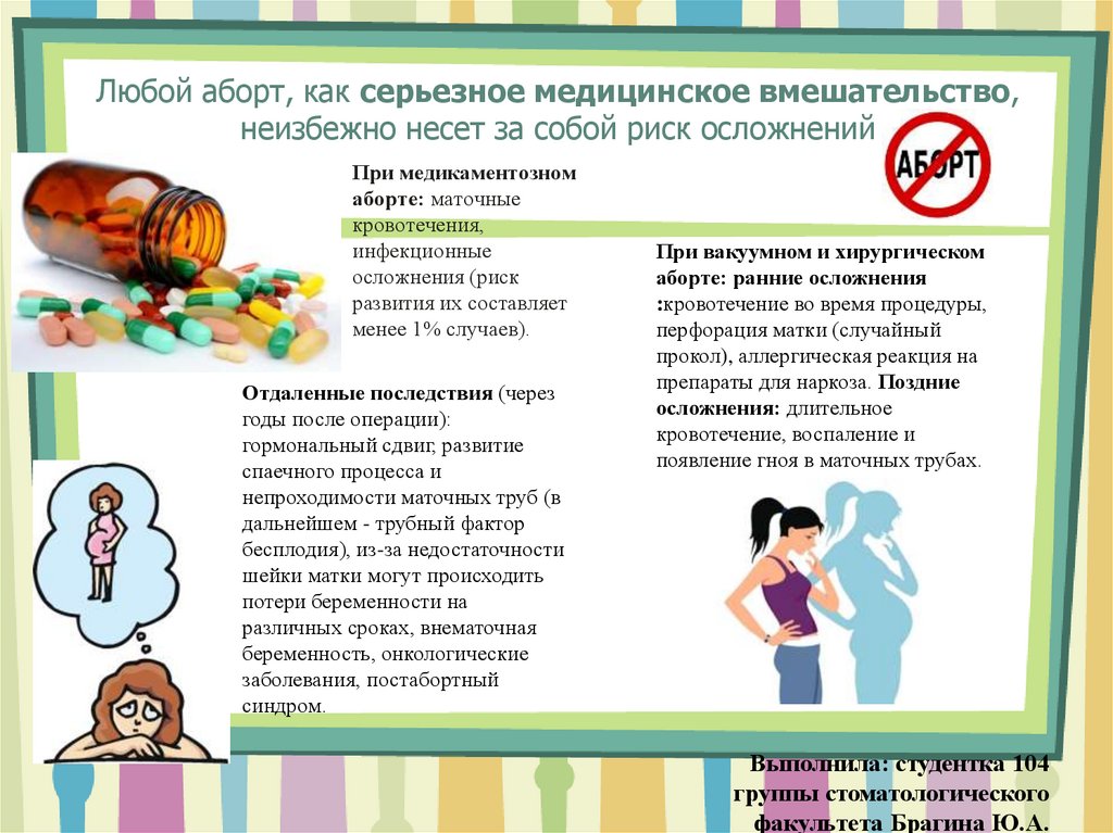 Любой аборт, как серьезное медицинское вмешательство,неизбежно несет за собой риск осложнений