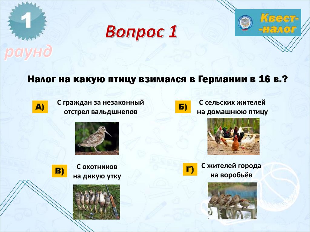Налог на какую птицу взимался в Германии в 16 в.?А)