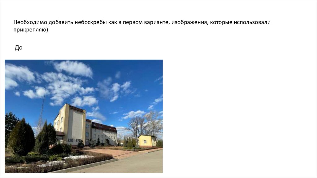 Необходимо добавить небоскребы как в первом варианте, изображения, которые использовалиприкрепляю)