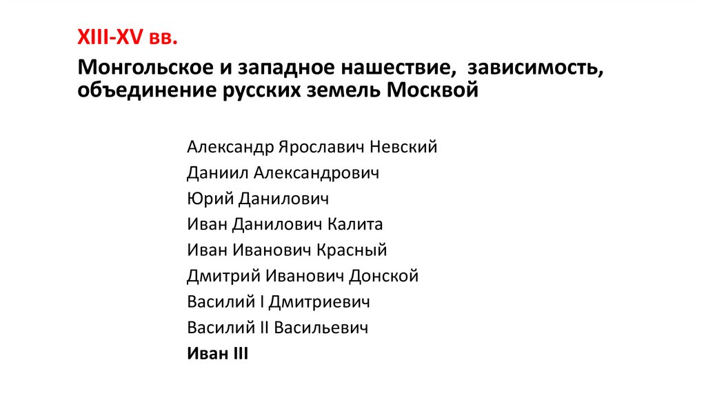 XIII-XV вв.Монгольское и западное нашествие, зависимость,