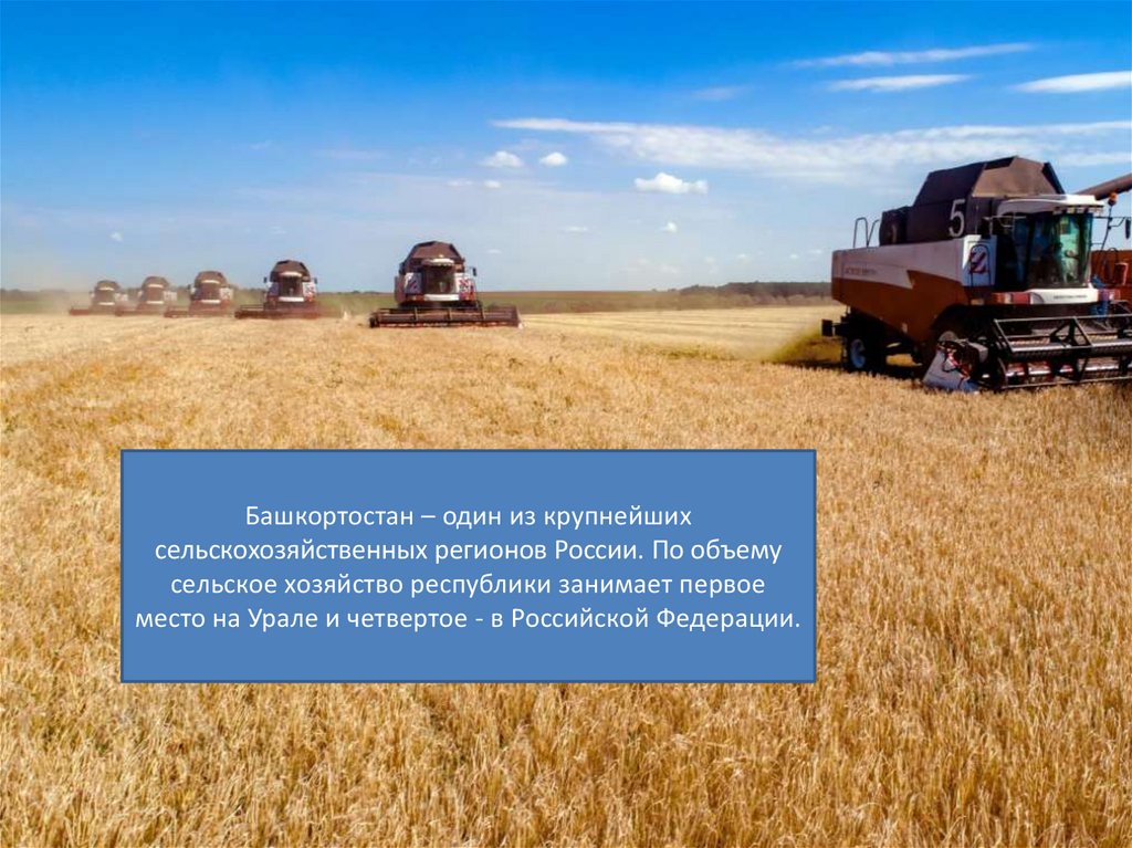 Башкортостан – один из крупнейшихсельскохозяйственных регионов России. По объему