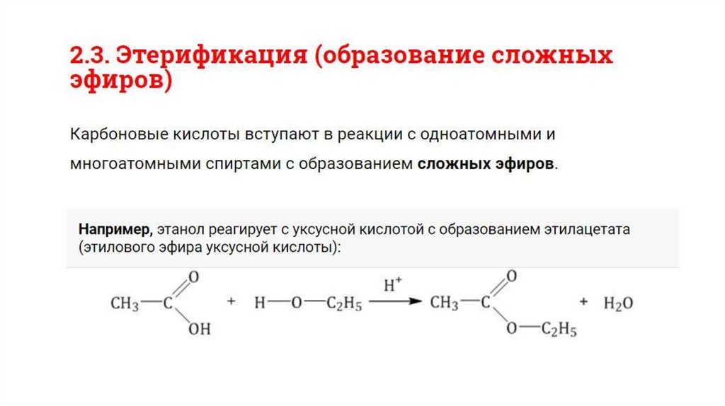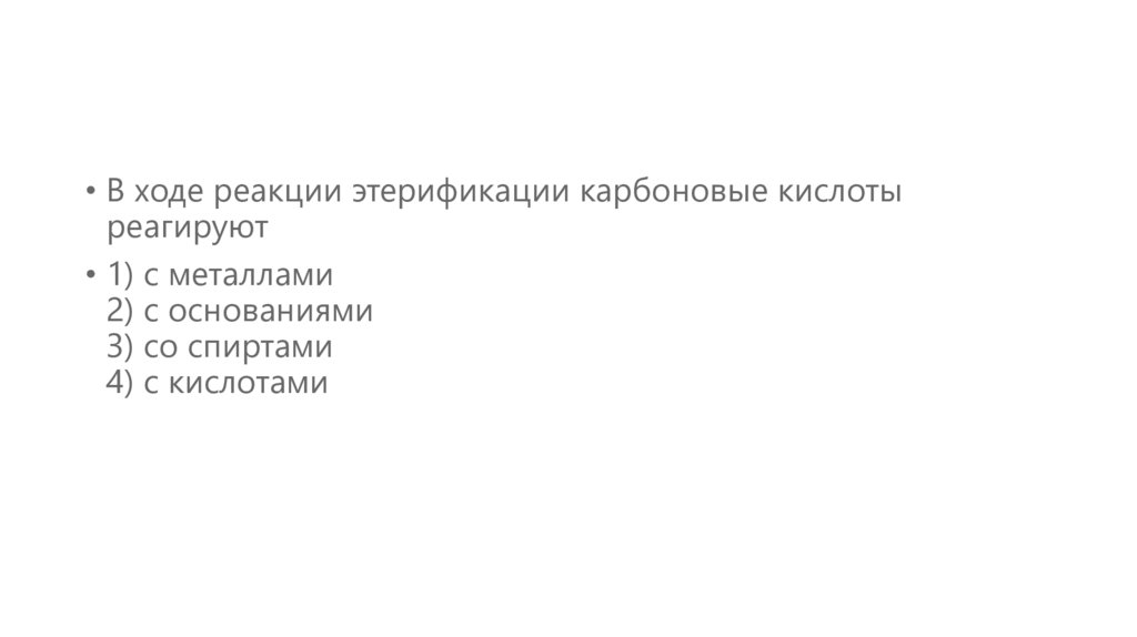 • В ходе реакции этерификации карбоновые кислотыреагируют