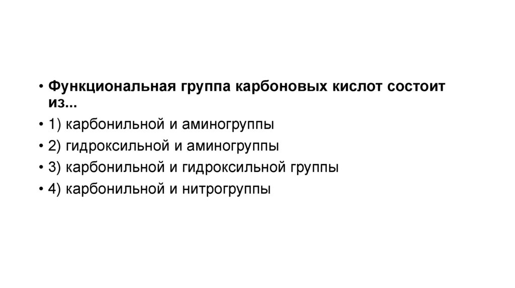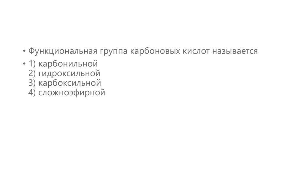 • Функциональная группа карбоновых кислот называется• 1) карбонильной